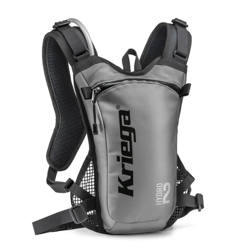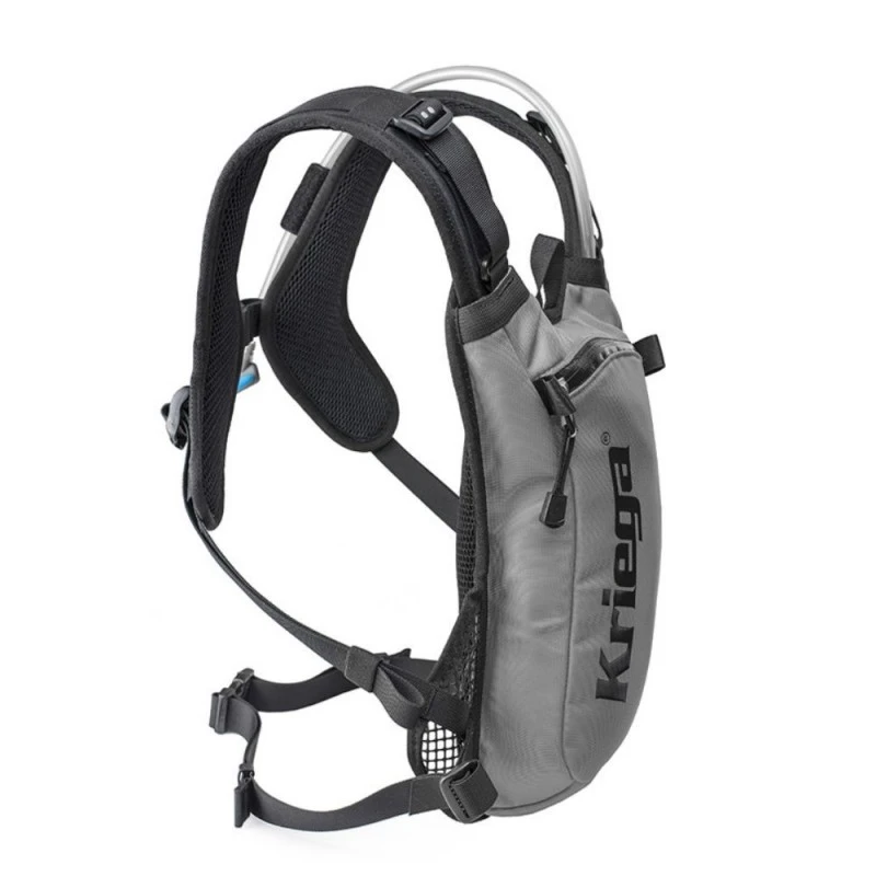 Mochila de hidratación KRIEGA Hydro-2 gris. Se fusiona nuestro renombrado arnés Kriega Quadloc-lite así como tejidos CORDURA 420D Lite Plus ofertando una mochila de hidratación inusual con relación a su gran ligereza y resistencia, a la vez de muy elegante.