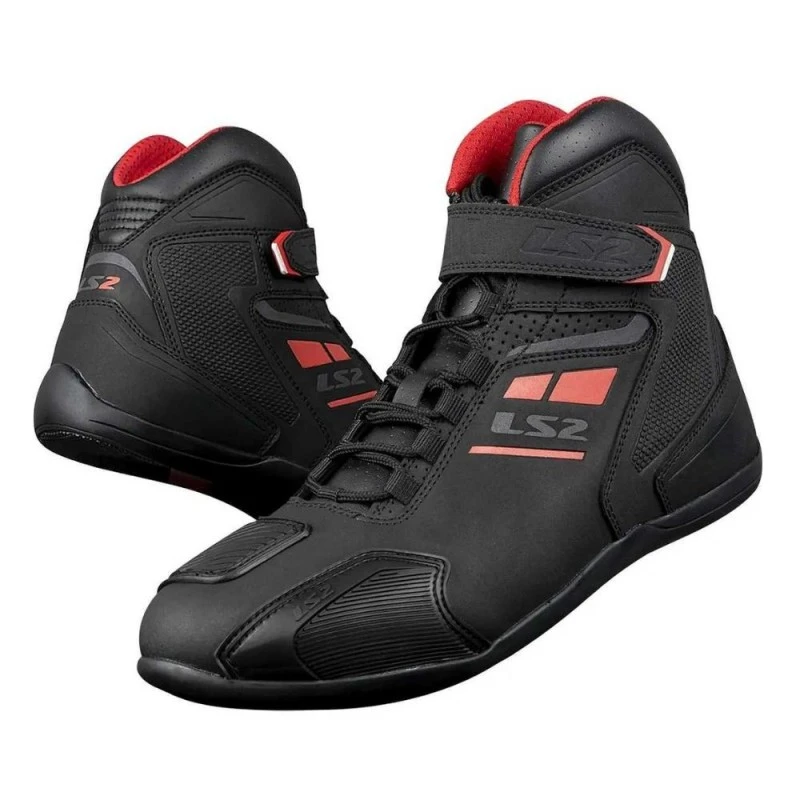 Botas LS2 Garra negro / rojo. Botas de estilo deportivo que cubren el tobillo y permiten un uso más polivalente, resultando perfectas tanto para desplazamientos urbanos como extraurbanos.