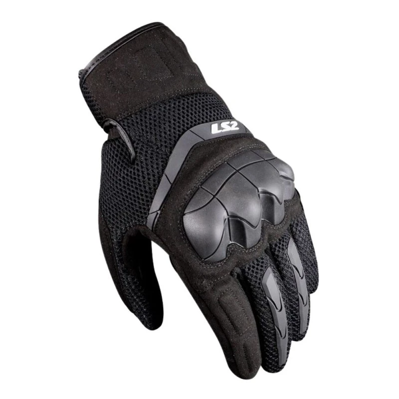 Guantes LS2 Kubra negro. Guante ligero diseñado para climas cálidos. Protecciones semirrígidas en nudillos. Protección de espuma en palma y muñeca.