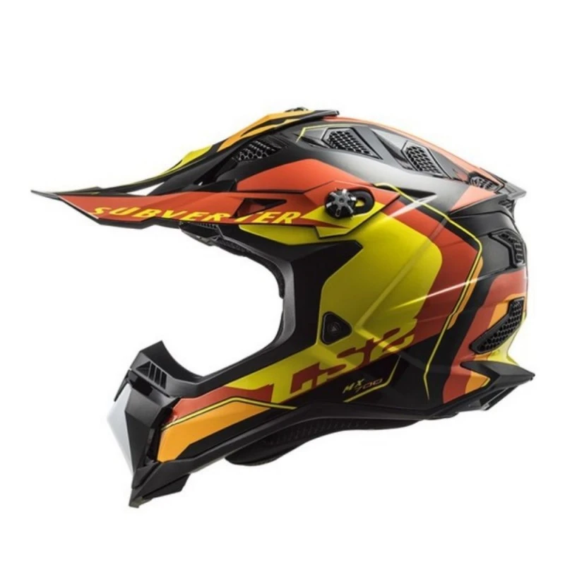 Casco LS2 MX700 Subverter Evo Arched negro / amarillo / rojo. Es un casco de Cross-Enduro con calota fabricada en KPA (Kinetic Polymer Alloy) que ofrece una alta absorción de energía en los impactos. Cuenta con un interior muy cómodo, transpirable y extraíble.