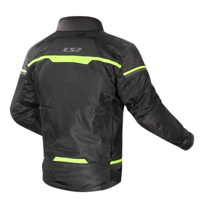 Chaqueta LS2 Riva negro / amarillo neón. Chaqueta impermeable y ultraligera de verano con forro interior transpirable, impermeable y desmontable. Puños, brazos y cintura perfectamente ajustables al cuerpo del usuario.