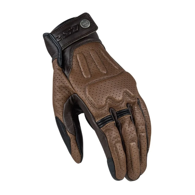 Guantes LS2 Rust Man Gloves marrón leather. Los guantes de motocicleta de cuero oxidado de estilo vintage combinan una protección excelente, un diseño atemporal y tecnologías modernas como dedos compatibles con pantalla táctil. Ventilación maximizada con la parte superior perforada. Los dedos anatómicos preformados aumentan la comodidad de conducción y reducen la fatiga.