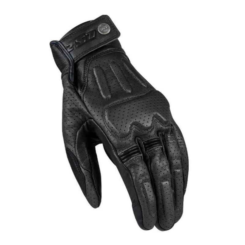 Guantes LS2 Rust Man Gloves negro leather. Guante de moto de piel de cabra estilo vintage, diseño atemporal, dedos compatibles con pantalla táctil, parte superior perforada, dedos preformados, protectores de nudillos, refuerzo en palma y pulgar, deslizadores de palma