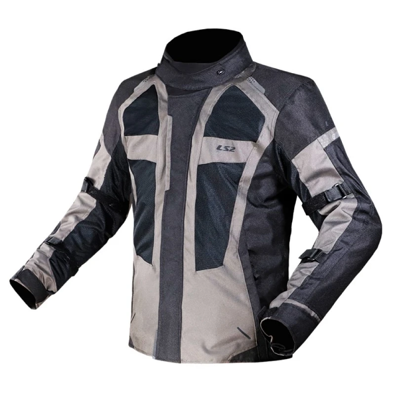 Chaqueta LS2 Scout chaqueta de hombre negro / gris oscuro. Esta confeccionada con Tela de malla de diamante tejido Oxford 600D Waterpoof transpirable extraíble, la membrana es de 5000 mm la permeabilidad al aire es de 3000 g / m2 / 24 h. Forro térmico extraíble.