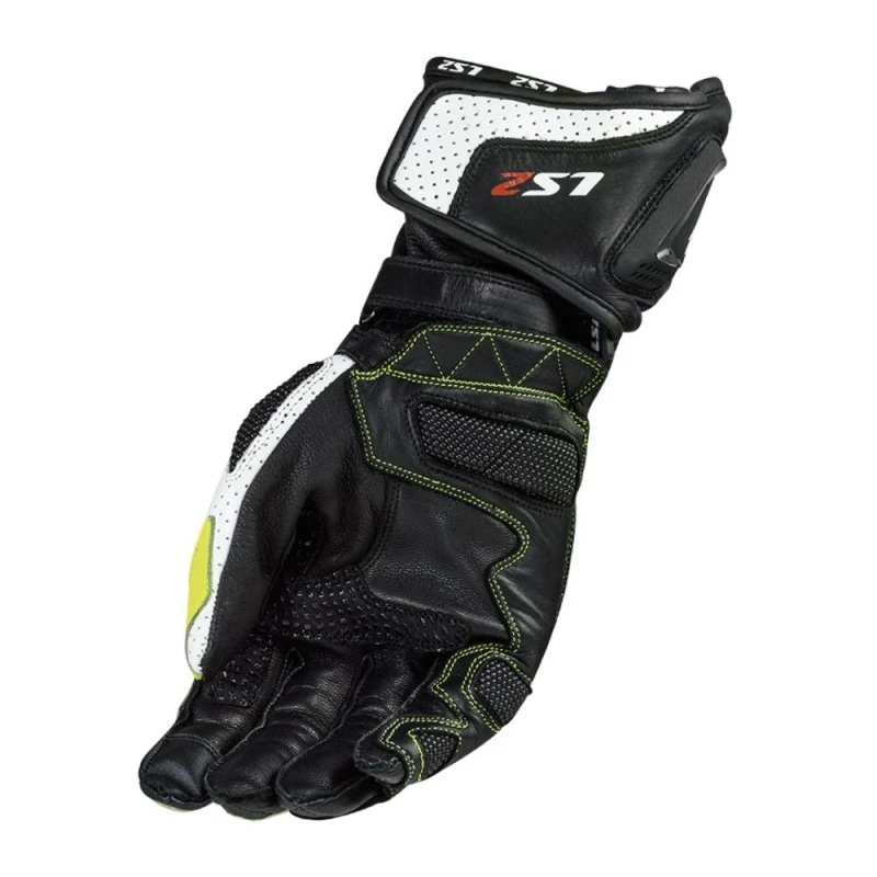 Guantes LS2 Swift Racing negro / neón amarillo fluor. Guante deportivo de piel con limpiador de visera integrado y protectores de nudillos endurecidos.
