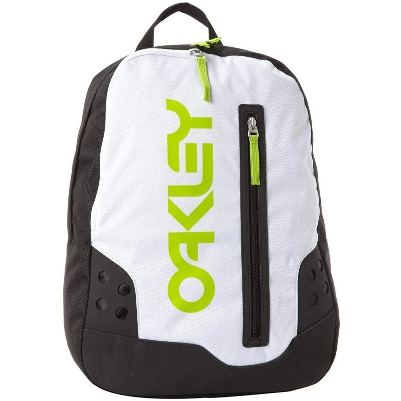 Mochila de la marca Oakley hecha de 89% poliéster 11% poliuretano, con un diseño interno que permite organizar objetos como gafas esferos y espacio para un portátil de 15 pulgadas.