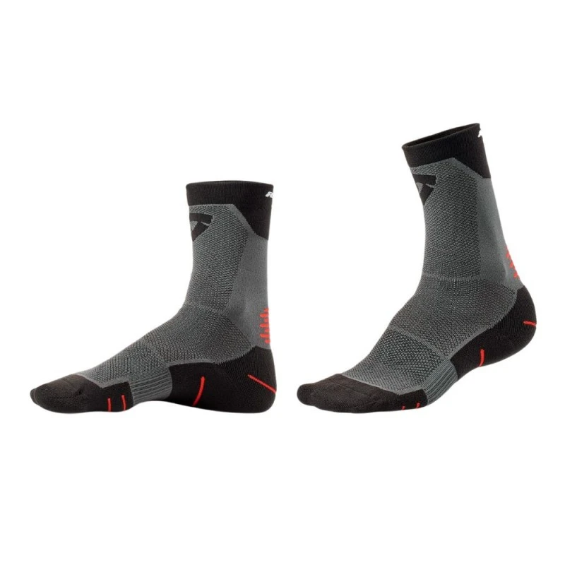 Calcetines REVIT Charger 2 gris / negro. Diseñados y utilizados por nuestros pilotos de MotoGP, los calcetines Charger 2 están listos para seguir el ritmo de las extenuantes demandas de aquellos que conducen a velocidades más altas y cuando las temperaturas más cálidas aumentan rápidamente.