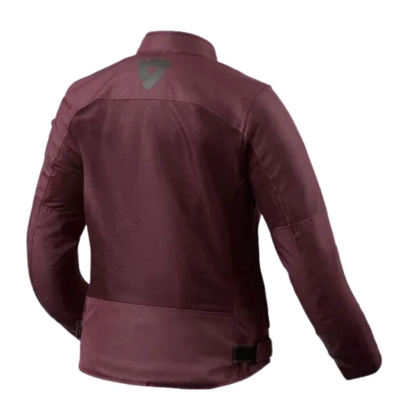 Chaqueta REVIT Eclipse 2 Lady berengena. Combina a la perfección estilo, frescura y seguridad para las motoristas que buscan comodidad en los días más calurosos. Con su diseño femenino y corte ajustado, ofrece una ventilación óptima gracias a los paneles de malla en pecho y espalda, que permiten la circulación del aire manteniéndote fresca durante todo el trayecto. Además, tiene detalles ajustables en cintura, brazos y muñecas que añaden un plus de confort.