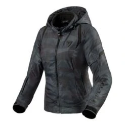 Chaqueta REVIT Flare 2 Ladies camuflaje / negro / gris. Chaqueta de estilo urbano con corte concreto para mujer. Incorpora membrana impermeable Hydratex G-Liner, forro térmico desmontable y dispone de entradas de aire con cremallera para una adecuada ventilación. Con protecciones Knox® Flexiform certificadas CE en hombros y codos y capucha desmontable.