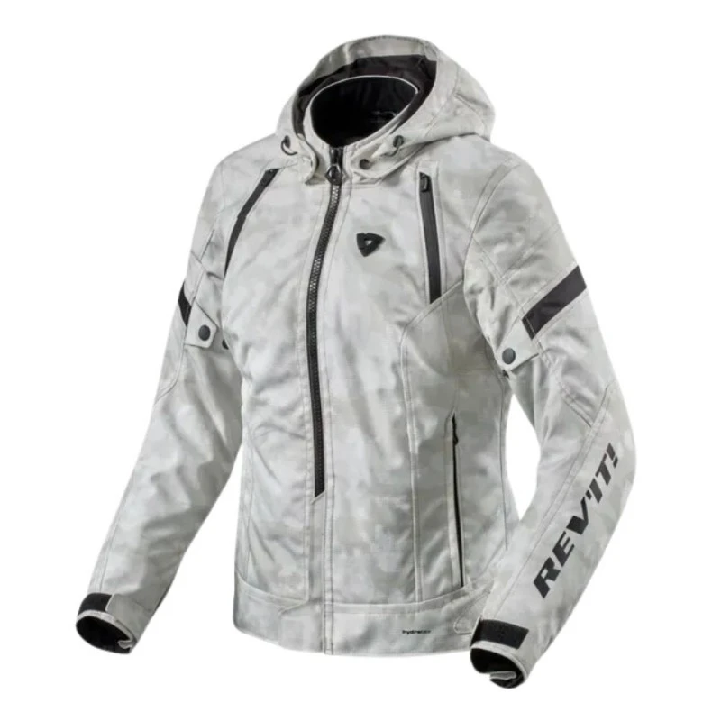 Chaqueta REVIT Flare 3 H2O Ladies camuflaje / gris / blanco. Estamos hablando de la chaqueta Flare 3 H2O Ladies. La nueva generación de ropa de calle Urban Sport preparada para la moto con un ajuste específico de mujer, fíjate en las líneas de la chaqueta Flare 3 H2O Ladies. Ahora mira más de cerca. Ocultas a la vista con el telón de fondo de un estampado de camuflaje modernizado, hemos incorporado hábilmente cremalleras de ventilación revestidas en las líneas del diseño desde la clavícula a lo largo del pecho. La lengüeta de ajuste a lo largo de la parte superior del brazo también sigue el flujo de las costuras para un aspecto más entallado. Los cierres de gancho en los puños y la cintura garantizan un ajuste perfecto en todo momento.