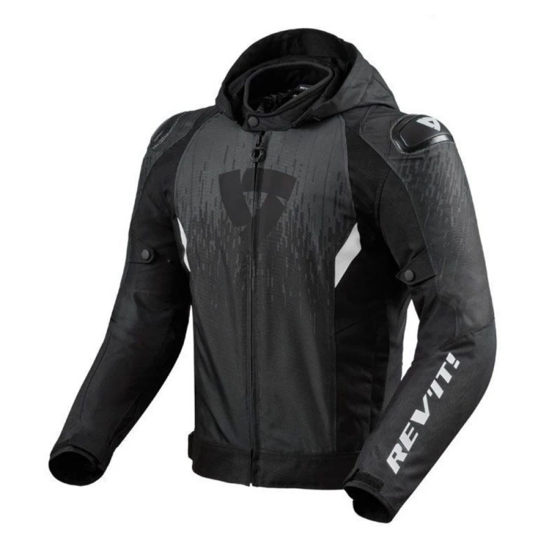Chaqueta REVIT Quantum 2 H2O negro / antracita. Chaqueta textil de estilo deportivo fabricada en poliéster 600D, muy resistente y perdurable. Tiene una membrana impermeable Hydratex y un forro térmico extraíble para amoldarse sencillamente a las distintas condiciones climáticas. Incorpora protectores en hombros y codos y refuerzos externos en los hombros para una mayor protección.