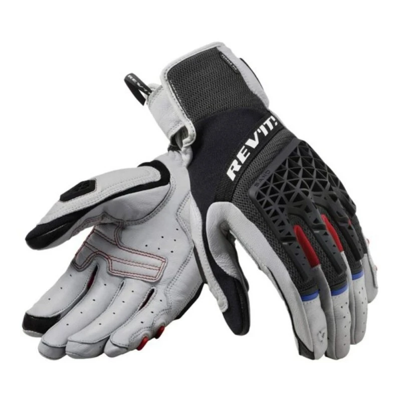 Guantes REVIT Sand 4 Ladies gris claro / negro. Guantes de estilo adventure con corte concreto para mujer, muy versátiles que ofrecen geniales niveles de confort, ventilación y ligereza. Confeccionados primordialmente en piel de cabra y malla ventilada 3D, disponen de protecciones en TPR flexible y ventilado en los nudillos, dedos y en la palma y de refuerzos estratégicamente situados. Combinan con perfección con el conjunto adventure Sand 4 H2O. Resalta por ofrecer geniales niveles de flexibilidad y ventilación.