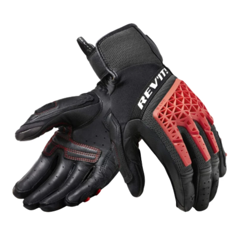 Guantes REVIT Sand 4 negro / rojo. Los guantes se elaboran con una reja flexible dura y resistente a las abrasiones, en combinación con un nudillo de alta tecnología en TPR, que se ha concebido para dirigir la corriente de aire al interior del guante y cara las manos del usuario. Cuentan con múltiples perforaciones por fuera y por la parte interior a fin de que transpiren todavía más. Se puede contar con protección auxiliar, merced a los protectores de TPR en dedos y pulgares. La deslizadera de la palma en TPR asegura un resbalón controlado en el caso de una poco afortunada caída. Los guantes Sand 4 se introducen con sencillez por el hecho de que tienen un práctico tirante en la muñeca, y se aseguran con una tira de velcro en exactamente la misma muñeca. Tienen Dedo de Conexión.