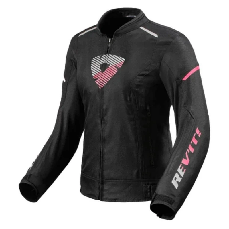 Chaqueta REVIT Sprint H2O Ladies negro / rosa. Chaqueta de diseño deportivo muy polivalente y funcional hecha a la medida para mujer. Confeccionada en poliéster 600D, cuenta con membrana impermeable Hydratex® G-Liner y forro térmico desmontable. Incorpora protectores homologados Seesmart nivel 1 en hombros y codos.