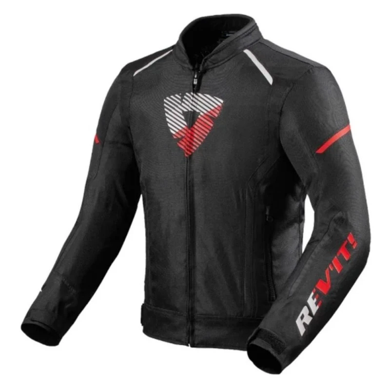 Chaqueta REVIT Sprint H2O negro / rojo fluor. Chaqueta de diseño deportivo muy polivalente y funcional. Confeccionada en poliéster 600D, cuenta con membrana impermeable Hydratex® G-Liner y forro térmico desmontable. Incorpora protectores homologados Seesmart nivel 1 en hombros y codos.