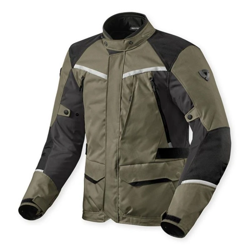 Chaqueta REVIT Voltiac 3 H2O verde / antracita. Las generaciones anteriores de esta chaqueta son el epítome de un equipamiento rutero accesible y capaz. Y cuando la cosa se pone fea, la Voltiac 3 H2O se sostiene fiel a sus raíces. Has de saber que se ha actualizado con tejido antidesgarros PWR|Ripstop en hombro, codo y áreas del antebrazo, más la construcción de capa externa con un poliéster 600D, muy amoldable a tu cuerpo y más que robusto, de forma que soporte con precisión cualquier ataque meteorológico.