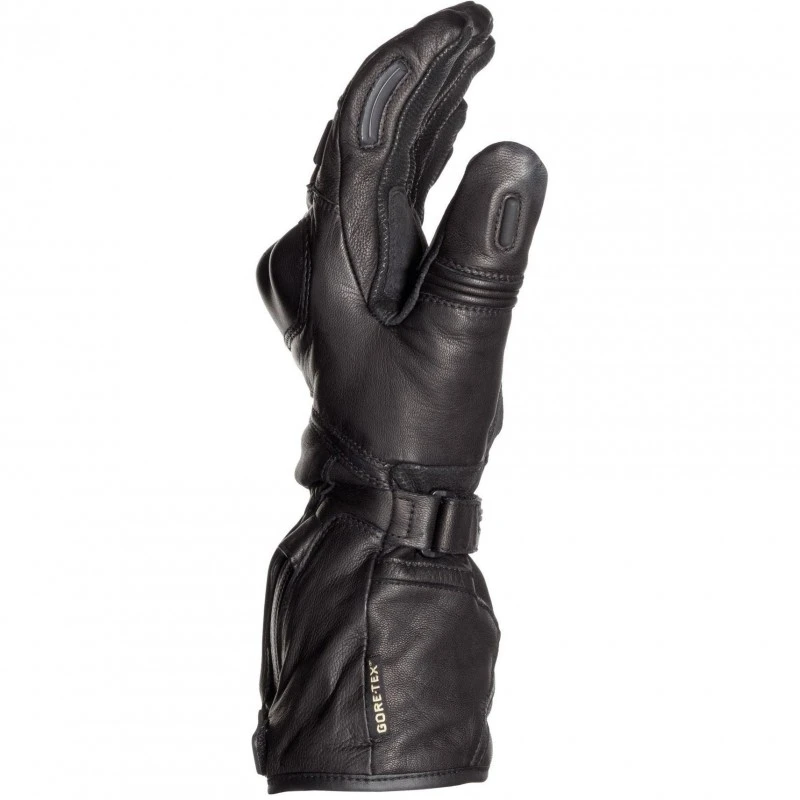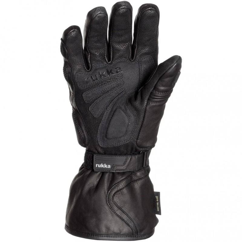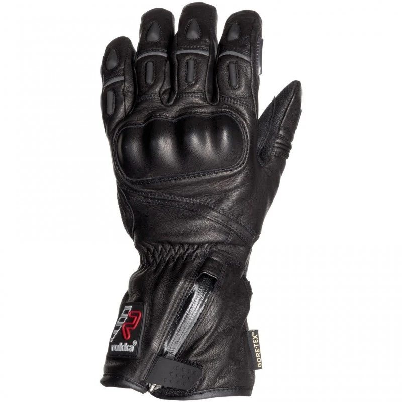 Guantes RUKKA R-Star negro. Están compuestos por una membrana impermeable y transpirable Gore Tex que facilitan y aportan comodidad durante la conducción. Además, está fabricado en auténtica piel de altísima calidad e incorpora un forro interior que protege las manos de las bajas temperaturas. Refuerzos en los nudillos y en la zona de los escafoides y limpiador de pantalla en la mano izquierda.