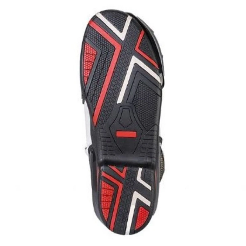 Botas SEVENTY SD-BR1 Racing blanco / rojo. Están fabricadas en piel sintética con inserciones de PVC. Resultan idóneas para un empleo deportivo en carretera y también incursiones en circuito. Para un mayor ajuste y confort, estas botas homologadas CE cuentan con plantilla sustituible y también inserciones reflectante trasera y lateral para acrecentar la visibilidad del motorista. El agarre está garantizado merced a su suela de caucho antideslizante, que incluye áreas concretas de agarre doble color y un protector para el cambio de marcha. cien por ciento impermeable. Refuerzos en espinilla, talón y dedo del pie. Protecciones en tobillo y puntos de flexión resistente. Máxima protección y agarre.