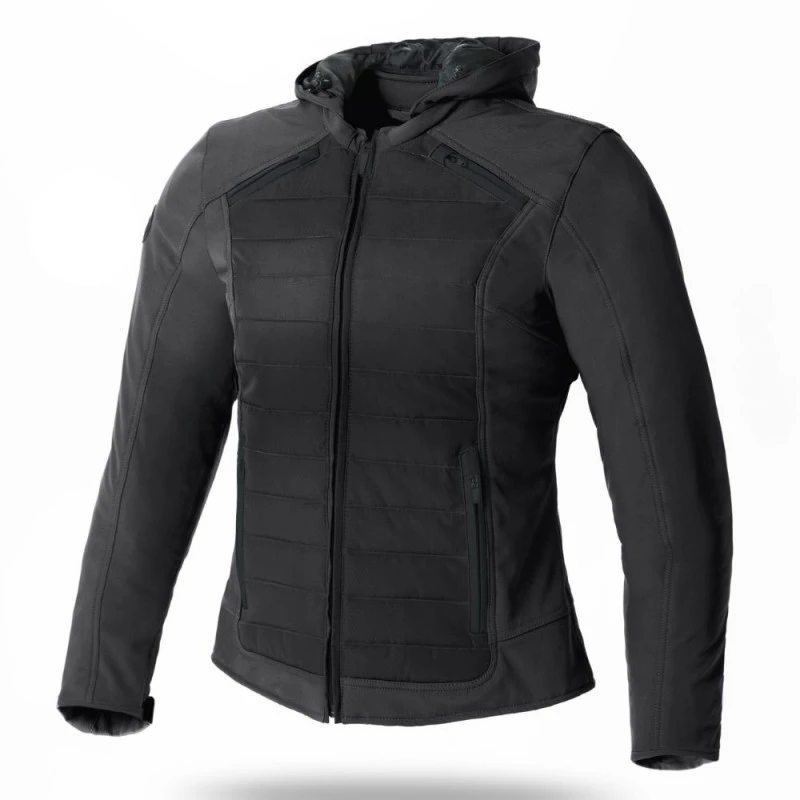 Chaqueta SEVENTY SD-JC75 Invierno Urbano Mujer negro. Chaqueta urbana de invierno para mujer, de corte medio. Impermeable con tejido repelente al agua. Confeccionada en tejido SOFTSHELL 320GSM, interior de polar fleece y la parte delantera y trasera rellena de Prilation. Con capucha extraíble mediante cremallera. Cuello alto confort con acolchado. Cremalleras de ventilación en la parte delantera y trasera de la chaqueta. Cremalleras de calidad YKK. En el interior de la chaqueta incluye un bolsillo para el teléfono móvil. Protecciones extraíbles para hombros y codos de nivel 1 homologadas (EN1621-1:2012).