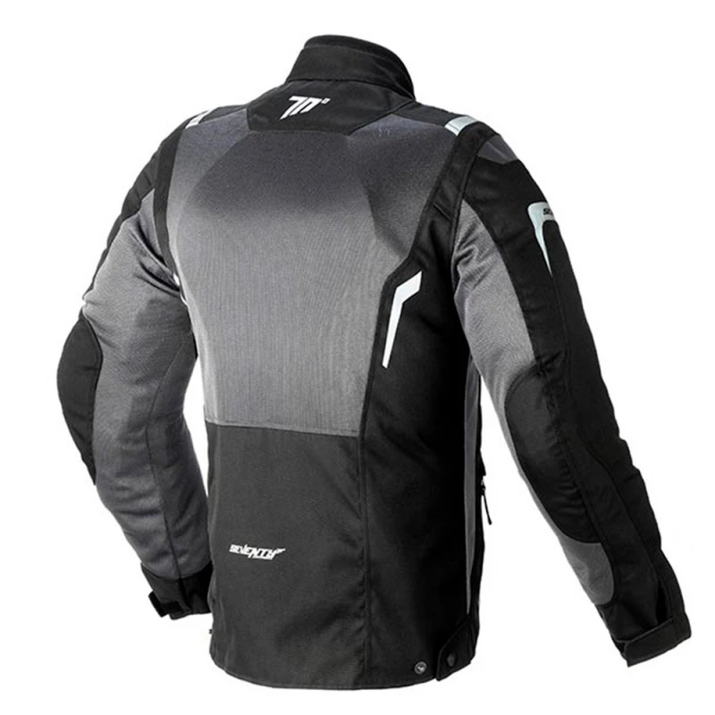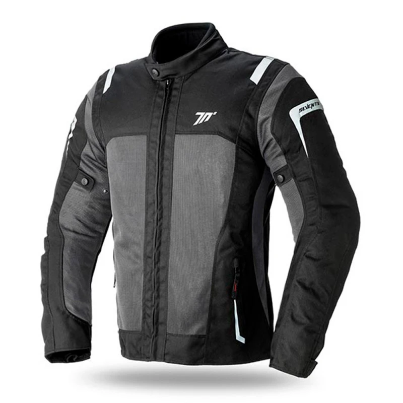 Chaqueta SEVENTY SD-JT46 Verano Touring Mujer negro / gris. Confeccionada en poliéster y tejido transpirable Mesh 100% ventilada. Bolsillos delanteros semiocultos para aportar un mayor look deportivo. Regulaciones en brazos y cintura para un ajuste perfecto. Cortavientos interior extraíble 100% impermeable. Cierre de botón ajustable en el cuello. Incluye protecciones en hombros, codos y espalda para mayor seguridad y protección. SEVENTY DEGREES. Más cómodo, imposible.