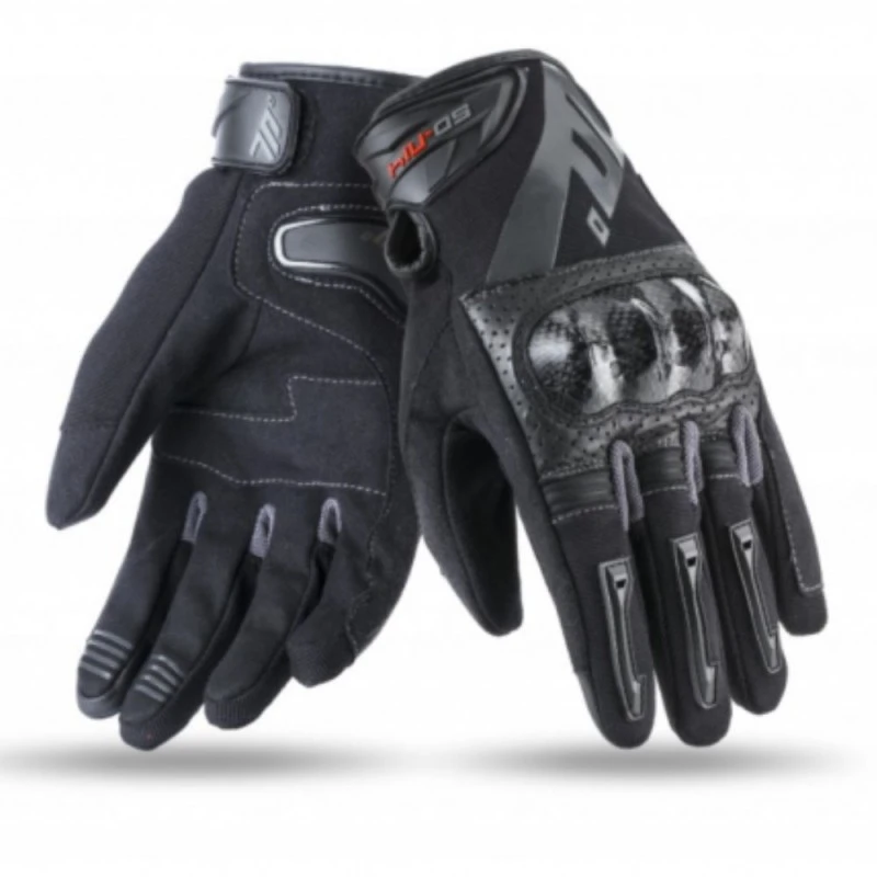 Guantes SEVENTY SD-N14 Verano Naked Hombre negro / gris. Confeccionado en Amara, Spandex y piel bovina, 100% transpirable y ventilado. Dispone de dorso en tejido flexible (Forguelle), cierre con velcro en la muñeca, lycra entre dedos, protecciones PVC en palma y dedos, protecciones de carbono perforada en nudillos, inserciones de silicona en dedos para un mayor grip, tejido táctil. Está cosido con el sistema pro-curve