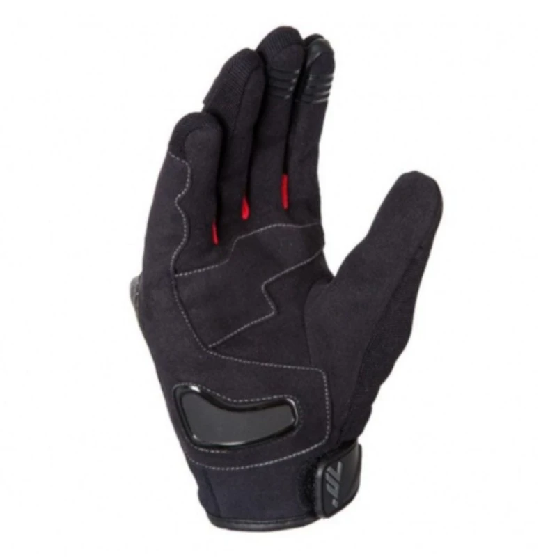 Guantes SEVENTY SD-N14 Verano Naked Hombre negro / rojo. Confeccionado en Amara, Spandex y piel bovina, 100% transpirable y ventilado. Dispone de dorso en tejido flexible (Forguelle), cierre con velcro en la muñeca, lycra entre dedos, protecciones PVC en palma y dedos, protecciones de carbono perforada en nudillos, inserciones de silicona en dedos para un mayor grip, tejido táctil. Está cosido con el sistema pro-curve