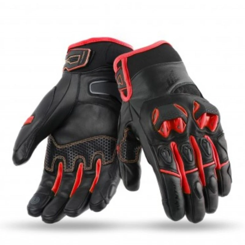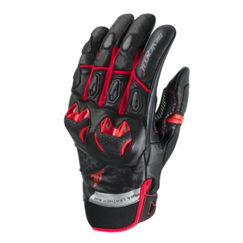 Guante SEVENTY SD-N32 Verano Naked Hombre negro / rojo. Corto confeccionado en piel bóvida, PVC, neopreno y lycra