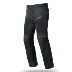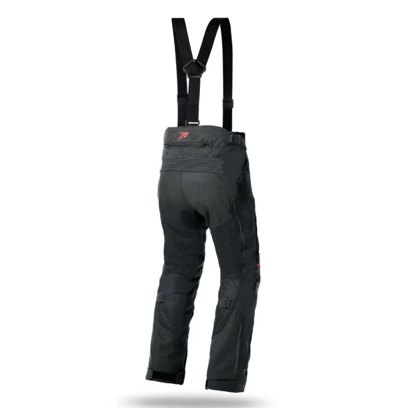 Pantalon SEVENTY SD-PT22 Verano Touring Unisex negro. Pantalones touring unisex para verano. Confeccionados en poliéster 600D y con alta presencia de tejido perforado. Con membrana impermeable y cortaviento extraíble (resistencia columna de agua +15000 mm H2O). Pantalón muy ventilado, ligero y cómodo. Con 2 bolsillos con cremallera. Fuelles de expansión en rodillas y detrás de la cintura para tener una buena movilidad. Ajustes regulables en la cintura, piernas y en los bajos para que tenga un ajuste perfecto. Inserciones reflectantes en múltiples zonas. Incluye tirantes y protecciones extraíbles en rodillas homologadas de nivel 1 (EN1621-1:2012) que pueden ser reemplazada por una protección de PU microcelular de nivel 2 (EN1621-2:2014) de Seventy Degrees.