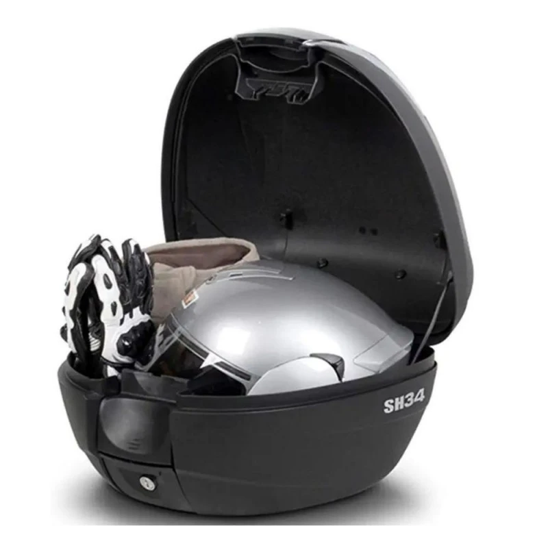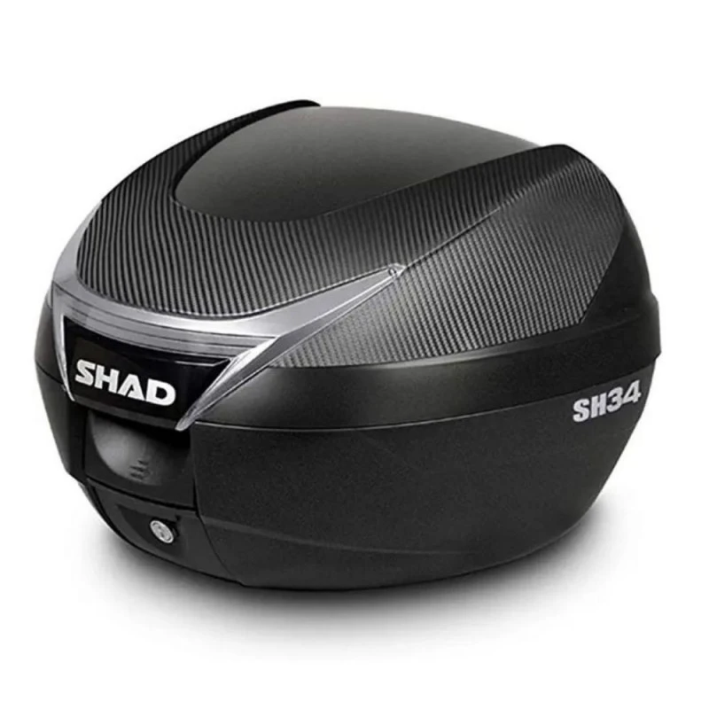 Maleta SHAD SH34 carbon. Maleta de 34 litros con capacidad para un casco integral y accesorios. Compacta y práctica, es ideal para uso diario. Cuenta con el cierre a presión Press Lock System y diferentes colores de tapa.