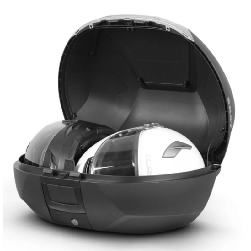El baúl SH47 resiste temperaturas extremas y protege la carga interior de la nieve y la lluvia. Fabricado con polipropileno reforzado de alta calidad, tiene capacidad para guardar dos cascos integrales, más accesorios de viaje.