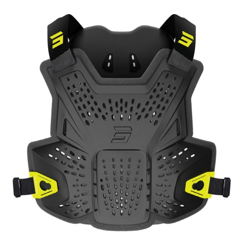 Protector pectoral SHOT Airflow negro / amarillo neón. El protector de pecho es suave y ultraligero para una comodidad y transpirabilidad óptimas.
