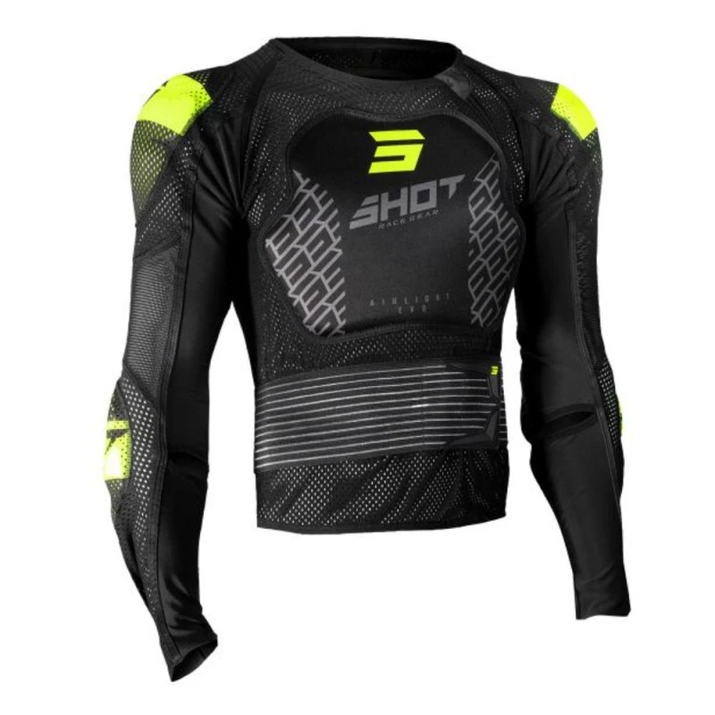 Peto SHOT Airlight 2.0 negro / amarillo. Peto integral conformado por protecciones de termoplastico inyectado en espalda, pecho, codos y hombros