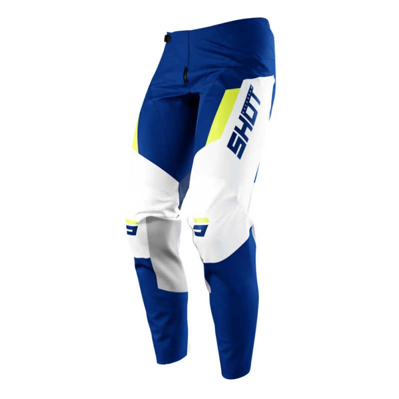 Pantalon SHOT Chase navy. Robustos y ligeros pantalones de enduro Shot Contact Chase. Confeccionados en tejido Dobby muy ligero y resistente, incluyen paneles de piel y paneles elásticos de elastano en los glúteos, la entrepierna y las rodillas que permiten una amplia movilidad sin restricciones.
