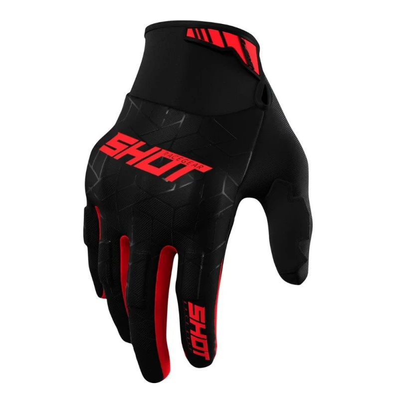 Guantes SHOT Drift Spider rojo. Los guantes de motocross Shot, disponen de refuerzos en la palma y los dedos y protector de nudillos flexible, que proporciona la mayor protección contra los impactos y la abrasión.