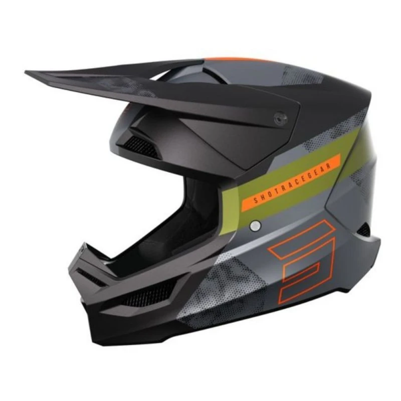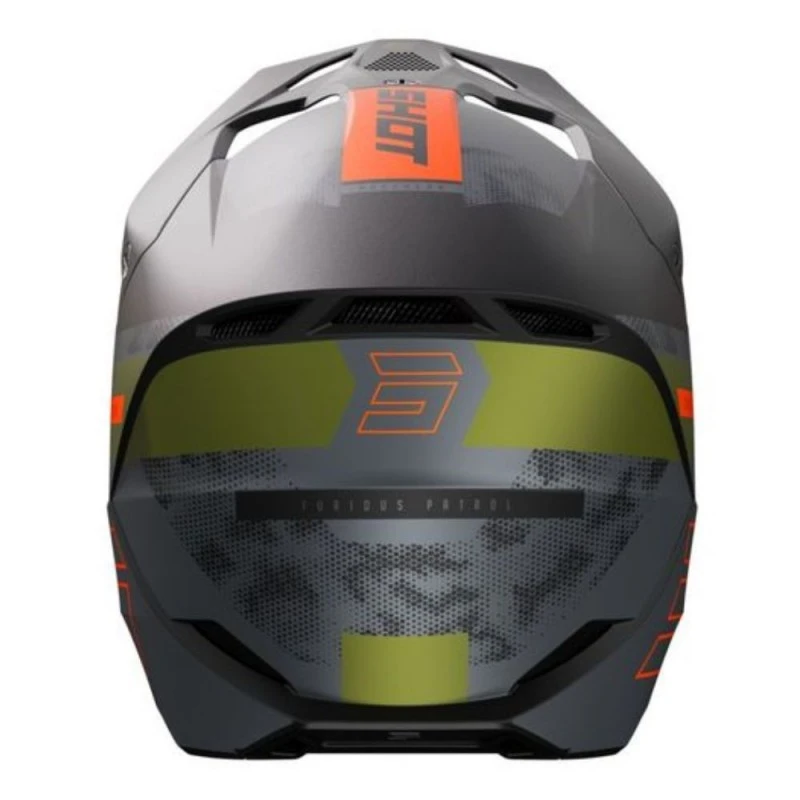 Casco SHOT Furious Patrol negro / caqui mate. Ligero y cómodo de llevar, el Furious de Shot es un casco de motocross SRS de policarbonato para adultos que ofrece un amplio campo de visión y una excelente ventilación. El Furious está diseñado para cumplir los exigentes requisitos de los pilotos, así como la norma ECE 22.06.