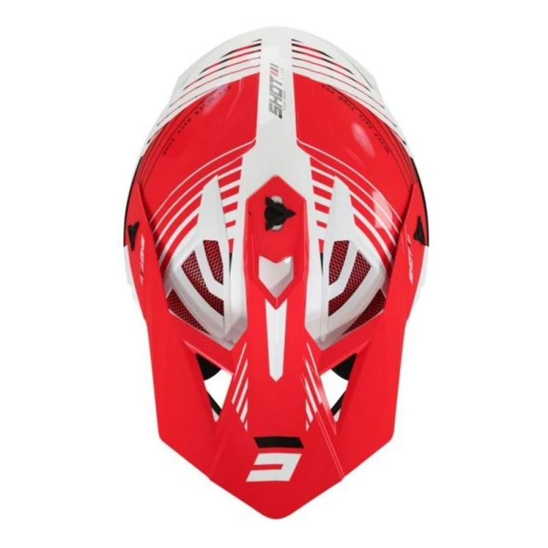 Casco SHOT Fury blanco / rojo. Deportivo casco de motocross Shot Fury con acolchado interior Morpho-Confort hipoalergénico. Cuenta con cierre inteligente de anilla D-doble, para sentirse aún más seguro y facilitar la acción de ponérselo y quitárselo. Sello de prueba homologado ECE 22.05.