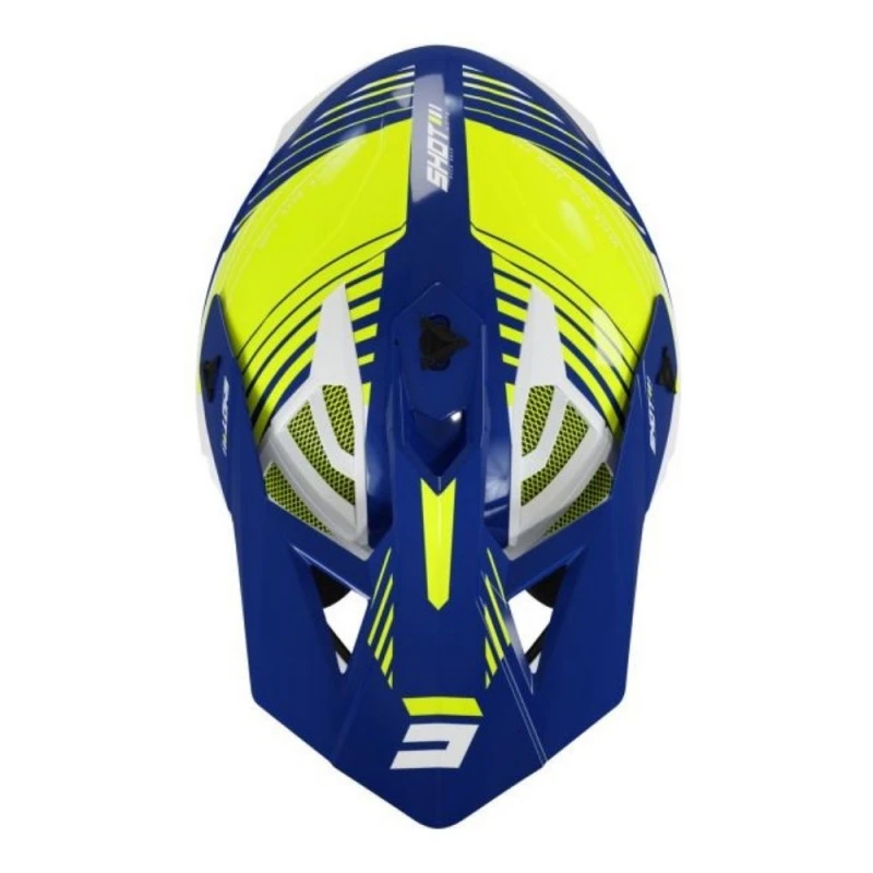 Casco SHOT Fury navy / amarillo neon. Deportivo casco de motocross Shot Fury con acolchado interior Morpho-Confort hipoalergénico. Cuenta con cierre inteligente de anilla D-doble, para sentirse aún más seguro y facilitar la acción de ponérselo y quitárselo. Sello de prueba homologado ECE 22.05.