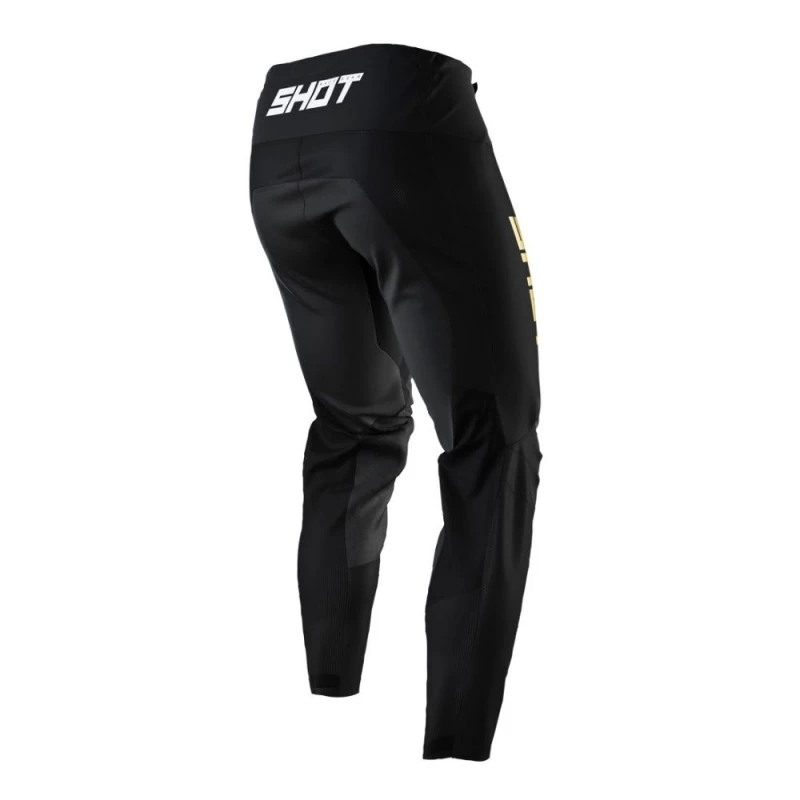 Pantalon SHOT Rockstar Limited Edition 2022 negro. Estilizados pantalones de verano para motocross Shot Rockstar Limited Edition 2022, confeccionados en tejido Dobby ligeros y resistentes. Incluyen paneles de malla micro-perforados en la parte posterior de las piernas, además de forro de malla, para una ventilación óptima.