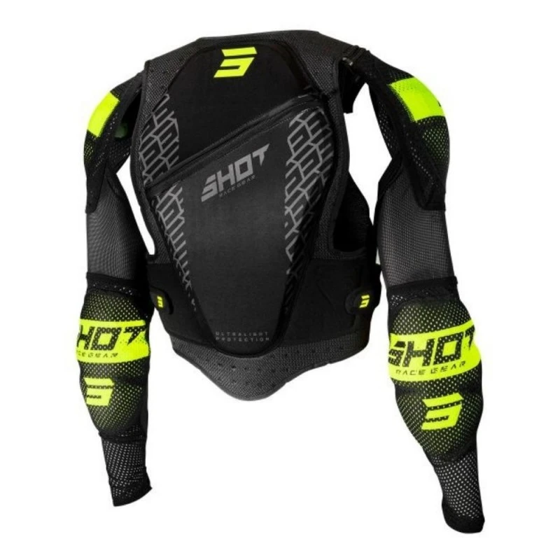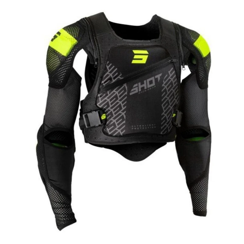 Peto SHOT Ultralight Kid 2.0 negro / amarillo. Peto de proteccion ultraventilado de espuma adaptable con faja de sujecion lumbar.