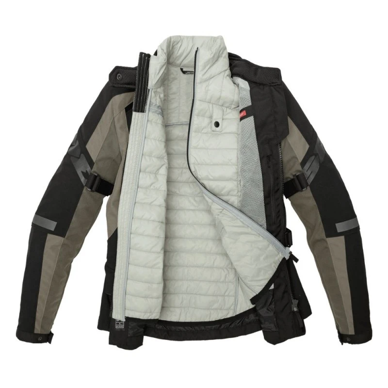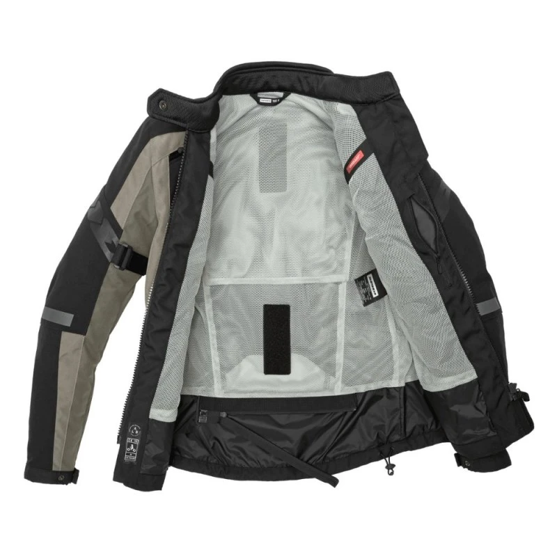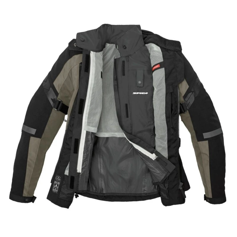 Chaqueta SPIDI 4 Season Evo Lady militar. La chaqueta 4 Season Evo Lady tiene certificación CE según la norma Pr En 17092-4:2020 Clase A, y viene con protectores extraíbles ForceTech en los hombros y codos Warrior Lite, que cuentan con la certificación CE Nivel 2 según la norma EN 1621-1: norma 2012. El equipamiento estándar de Step-In Wear incluye 2 chaquetas interiores separadas: una impermeable, confeccionada con tejido transpirable e impermeable 5k/5k H2Out®, y un forro térmico de 100gr/m². Es posible utilizar cada una de las 3 partes de 4 Season Evo Lady de forma independiente o combinada con 1 o 2 componentes más.