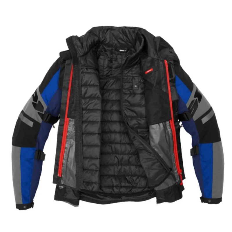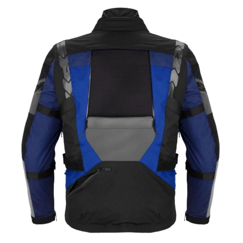 Chaqueta SPIDI 4 Season Evo azul. El chasis primordial integra nylon 6.6 Extra Tenax de 3 capas de alta tenacidad que ofrece una genial resistencia a la abrasión y la perforación y un poliéster cubierto de PU, en áreas sensibles. Sus paneles de malla garantizan una genial circulación de aire; puestos en el pecho, el antebrazo y la espalda, se han situado estratégicamente para enfriar al corredor de la forma más eficaz a lo largo de los días más cálidos.