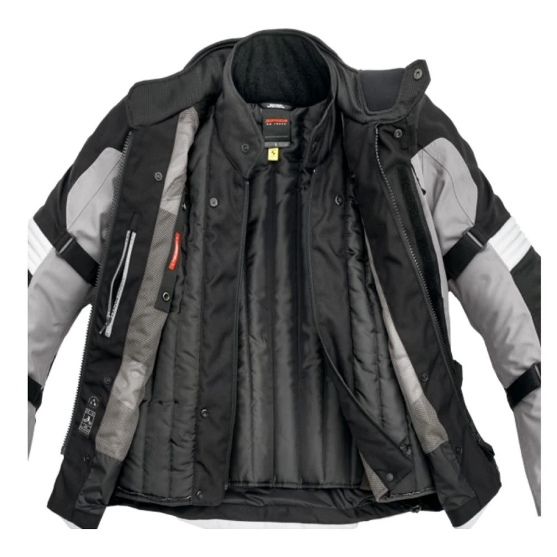 Chaqueta SPIDI Alpentrophy negro / gris. Se desarrolló a partir de una pizarra en blanco para convertirse en una de las mejores chaquetas de motocicleta de turismo de aventura del mundo, combinando seguridad, comodidad y una genuina capacidad de uso para las cuatro estaciones.
