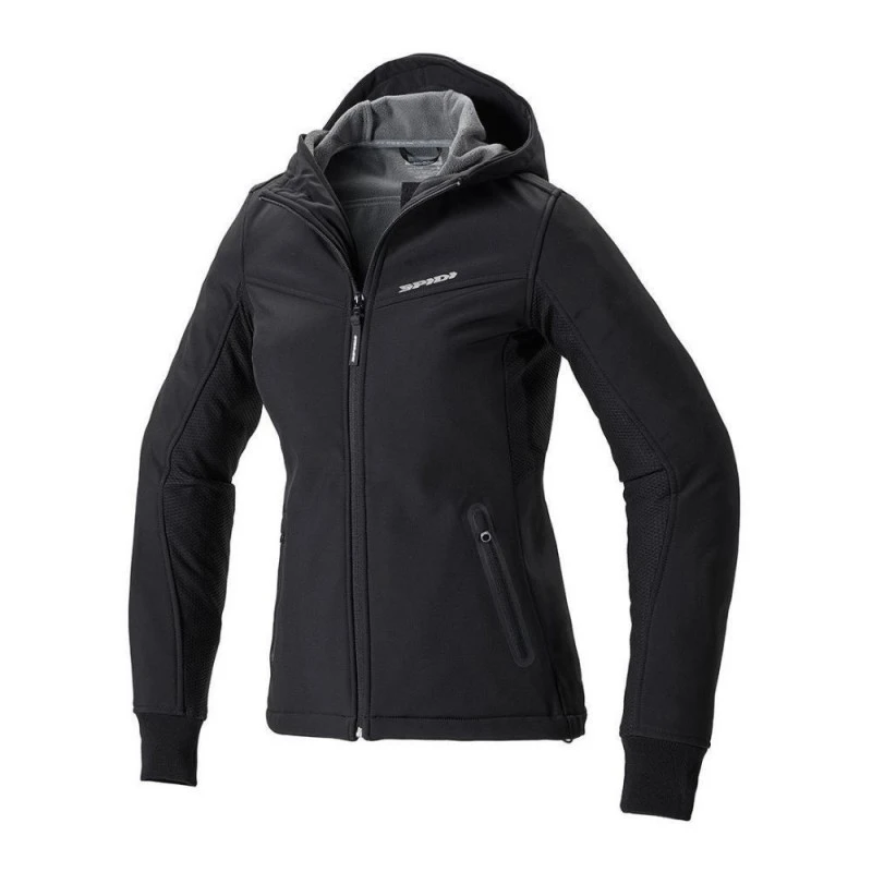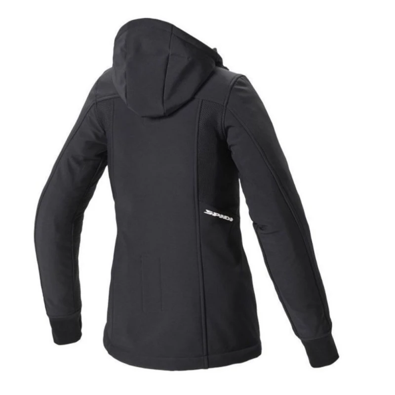 Chaqueta SPIDI Armor Lady negro. La novedosa SPIDI Hoodie Armor Lady es la edición femenina del habitual modelo masculino. La chaqueta certificada prEN 17092-4: 2017 Clase A tiene capucha dentro, protectores extraíbles Warrior Lite certificados Nivel 1 en hombros y codos, con asegurador de espalda Back Warrior opcional (Nivel 1 En 1621-2: 2012). La sudadera con capucha Armor Lady está confeccionada en tejido Softcell fuerte a la abrasión, con forro de microfibra y datos reflectantes para una más grande visibilidad nocturna.