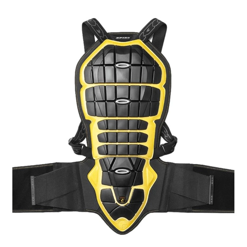 Protector de espalda SPIDI Back Warrior 180-195 negro / amarillo. Protección de espalda de nivel 2 CE para ciclistas de 180 a 195 cm de altura. La tecnología Warrior se basa en células de materiales compuestos ligeros altamente amortiguadores. El resultado tangible es una certificación CE de nivel 2 con un factor de absorción de impactos promedio de 9 KiloNewtons. Durante las pruebas de certificación de este tipo de protectores, el valor de energía residual requerido no debe ser superior a 18 KNs. La energía residual de Warrior Back es de 7,8 KNs. Sorprendentemente ligero, fino y cómodo, este protector evoluciona la idea de la mejora del confort como factor de mejora de la seguridad, porque facilita la conducción y permite que el ciclista se concentre mejor.