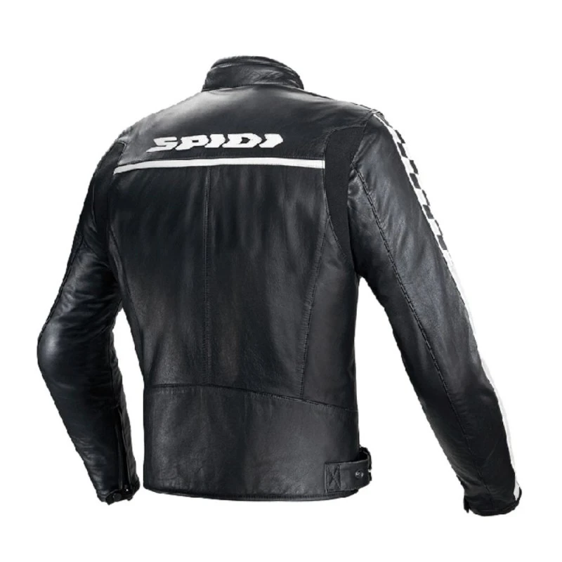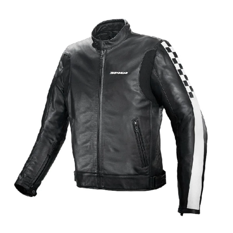 Chaqueta SPIDI C-Flag Leather negro / blanco. De cuero de vaca de estilo clásico hecha para la conducción custom, cruiser y caf racer.