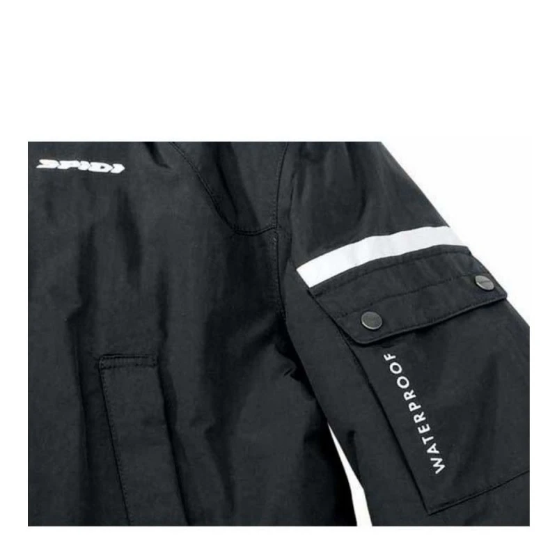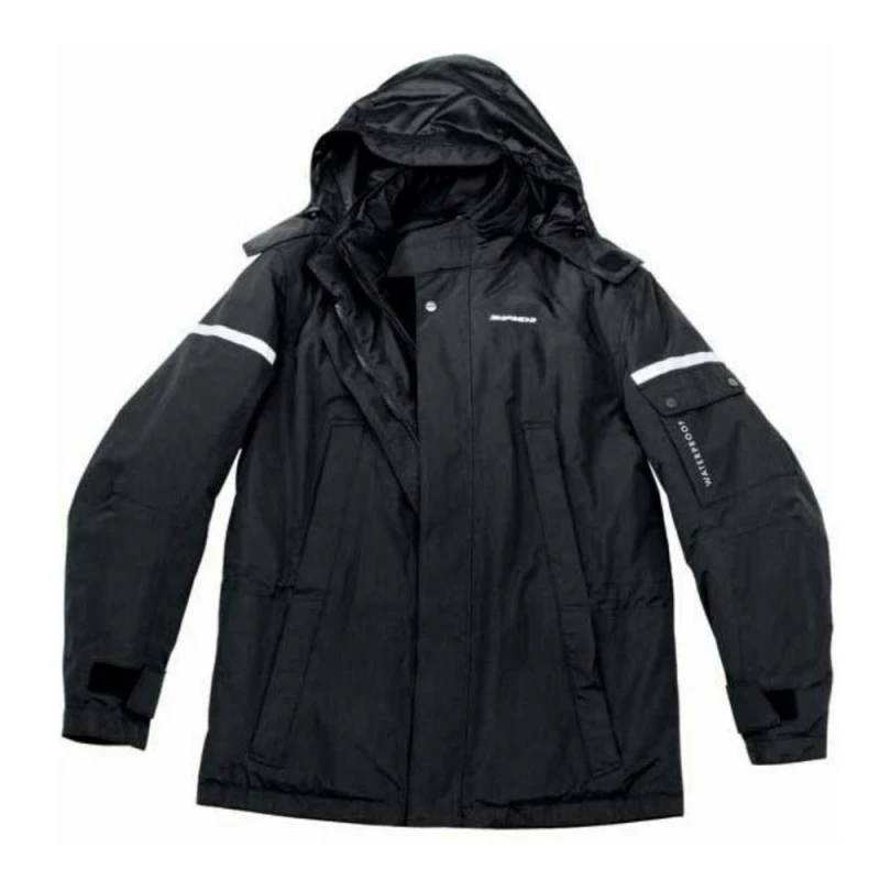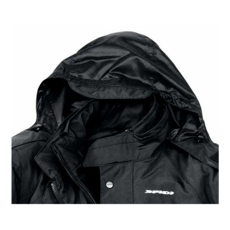 Chaqueta Impermeable SPIDI Cadillac negro. Overjacket prueba de agua para uso urbano con capucha, las zonas reflejas y el volumen se ajusta.