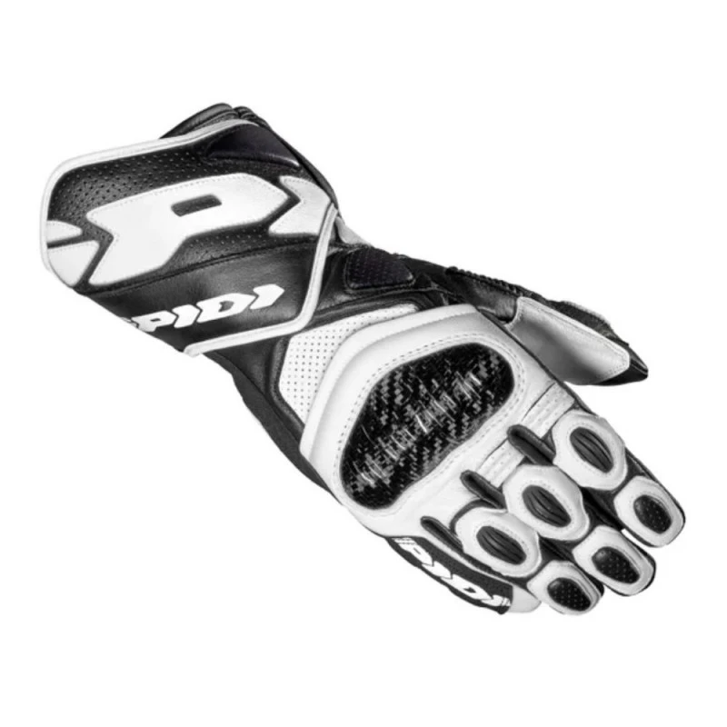 Guantes SPIDI Carbo 7 negro / blanco. Los SPIDI Carbo 7 son la última versión de los guantes de competición de la serie Carbo, de alta tecnología, en los que confían los pilotos profesionales de más alto nivel del deporte del motor en todo el mundo gracias a su certificación CE de Nivel 1 EN 13594:2015 KP. Cada guante está confeccionado en cuero de cabra de 0,6 mm a 0,8 mm, muy apreciado por su ligereza y su extrema resistencia a la abrasión y a los desgarros. Su protección de fibra de carbono se coloca sobre ambos nudillos, y los guantes tienen un acolchado de alta densidad en la palma, el dorso de la mano y el costado de la mano.