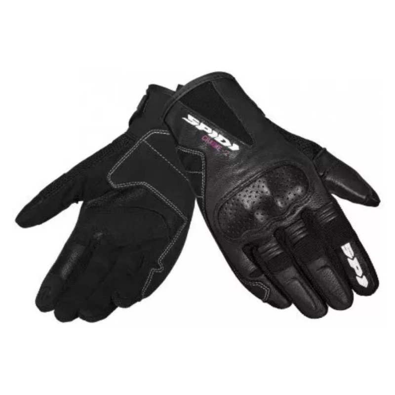 Guantes SPIDI Charme 2 Lady negro. Son unos guantes diseñados para adaptarse a la morfología de la mano femenina , con protección de poliuretano termoformado en los nudillos y en las inserciones para el máximo confort en la conducción . La estructura de piel vacuna está reforzada con keramida en la palma y con múltiples capas en el dedo meñique , para una mayor resistencia a la abrasión . Ideal para su uso en viajes de corta distancia y movilidad urbana.