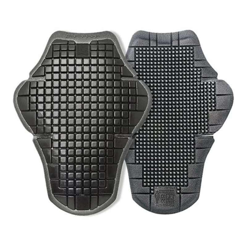 Protector SPIDI Compact Warrior K6. Este protector de espalda está homologado para alturas de jinete desde 157cm hasta 193cm. Según la legislación vigente, este protector proporciona protección a todas las zonas de la espalda, por lo que es apto para su uso dentro de las medidas de altura mencionadas. La estructura del Back Warrior es un emparedado de múltiples capas de materiales, la primera de las que es recia y reparte el impacto al paso que la segunda y la tercera son progresivamente más blandas y absorben la energía del impacto. Los cubos que conforman la superficie interior y exterior del Back Warrior son capaces de absorber un veinte por cien adicional de energía de impacto más que una simple superficie llana, todo ello manteniendo una enorme resistencia a la abrasión. La superficie interior, más blanda, también ha sido moldeada para asegurar la circulación del aire y sostener así el confort a lo largo de la conducción, singularmente en tiempos cálidos.
