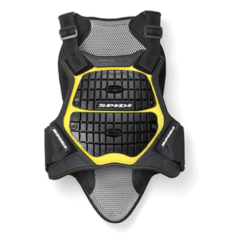 Protector de espalda SPIDI Defender B&C 170-180 negro / amarillo. Este protector de Clase 2 cumple con la norma En 1621-2:2014 y ofrece una fantástica protección contra impactos tanto para la espalda como para el pecho.